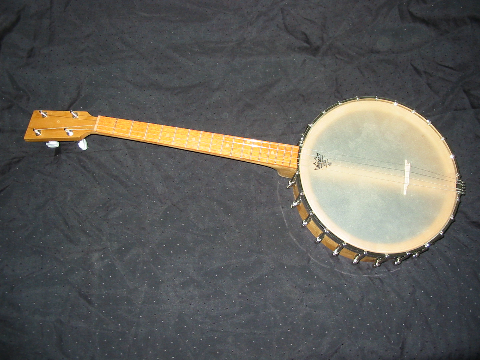 This was my first time making a tenor banjo, in 2014. It has an 11″ pot and 17 frets.
