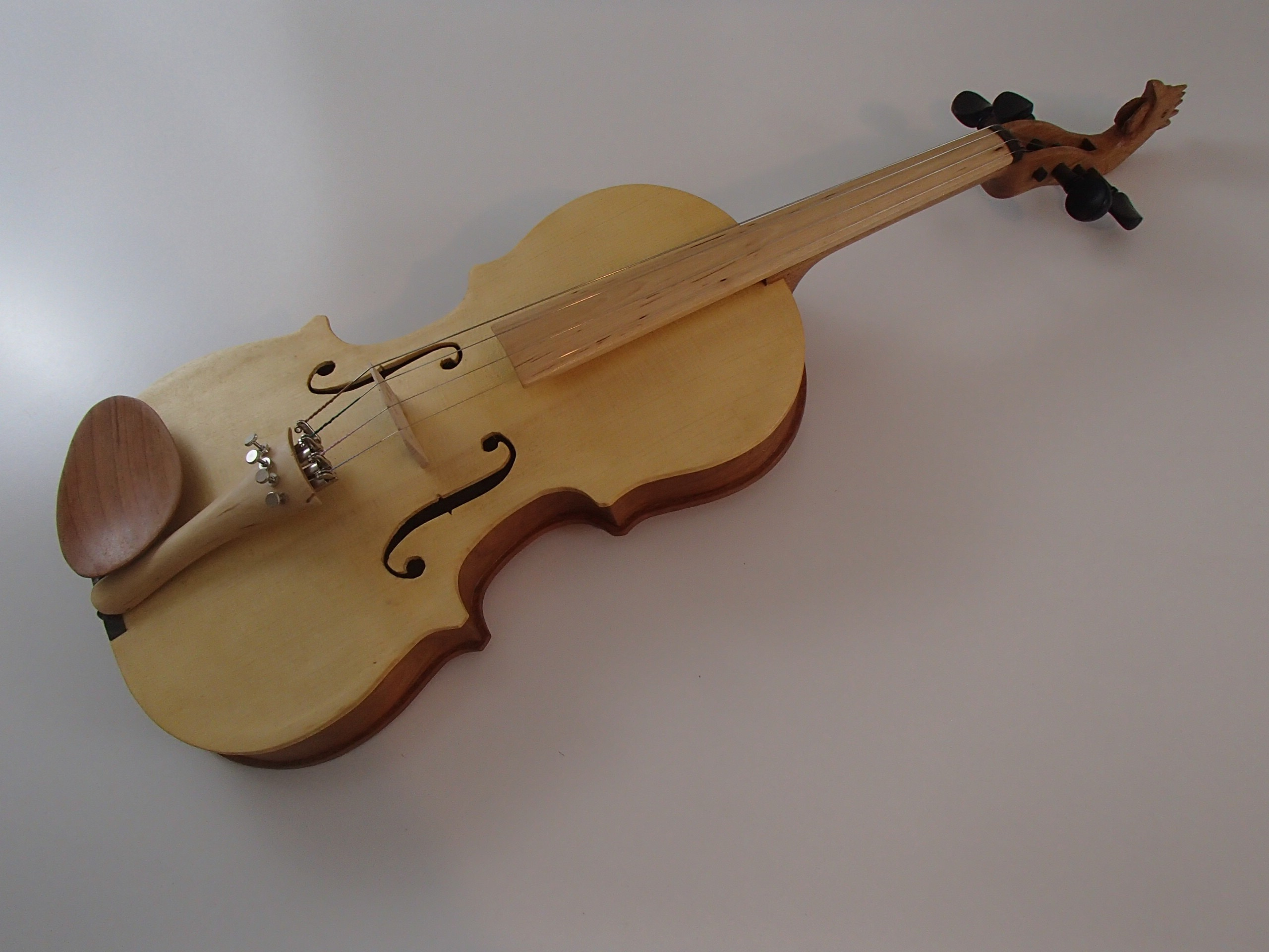 This is my first chicken head fiddle. I made it in January for an exhibit at TAUNY in Canton NY which recently ended. My goal was to make it as much as possible from wood from trees I had cut here on the farm where I am living, so it is made mostly from cherry with a hop-hornbeam fingerboard, both from the farm, and an Engelmann spruce soundboard from out West somewhere. It has ebony pegs and endpin and a Tru Oil finish. I had been thinking of making a chicken head fiddle for a while, and it was fun to finally get to give it a try. I have made one more since then for a customer and have another custom build on the way in January, but this one is ready to go if anyone wants it. It’s a standard 4/4 size. I am not any better at playing the fiddle than the banjo, but I did what I could to demonstrate it at the link below.
